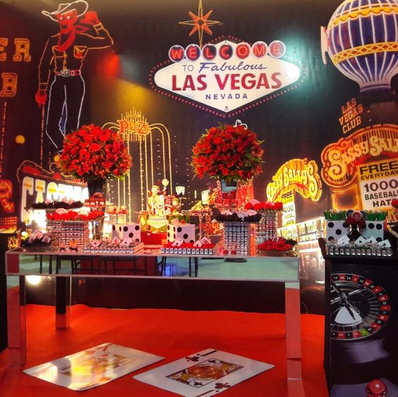 Lleva la emoción de Las Vegas a tu fiesta con una noche de casino. Usa colores elegantes como el negro, rojo y dorado. Decora con fichas de póker, cartas gigantes y mesas de juego. Crea una atmósfera lujosa con luces brillantes y música jazz. Ofrece bebidas elegantes y bocadillos para completar la experiencia. Puedes contratar crupieres profesionales para gestionar las mesas y ofrecer premios para los ganadores.