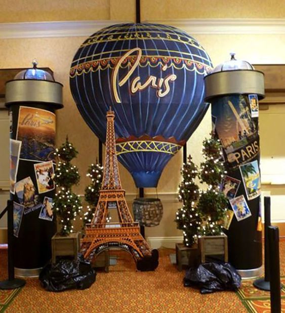 Lleva a tus invitados a la ciudad del amor con una noche en París. Usa colores elegantes como el blanco, negro y dorado. Decora con imágenes de la Torre Eiffel, luces de cadena y candelabros. Coloca mesas de café estilo bistró y ofrece delicias francesas como croissants y macarons. No olvides incluir música francesa de fondo y estaciones de fotos con accesorios parisinos como boinas y baguettes.